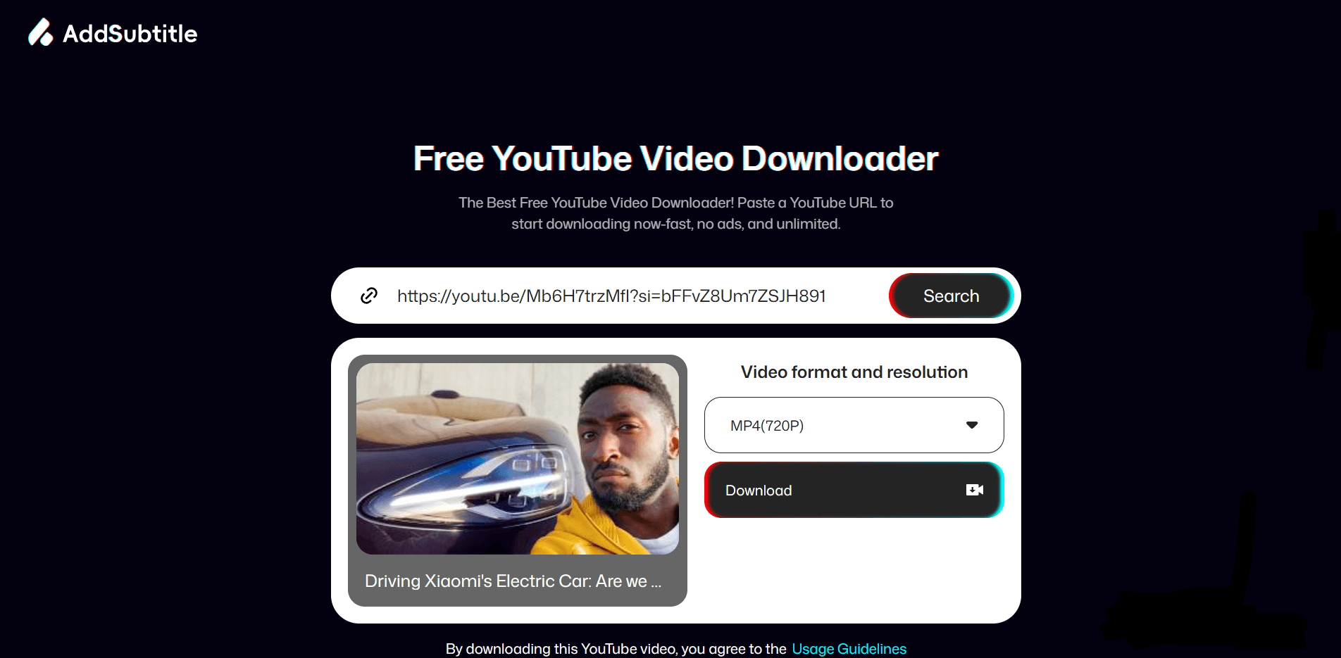 AddSubtitle を使えば、YouTube 動画をシンプル・高速・完全無料でダウンロードできます。
