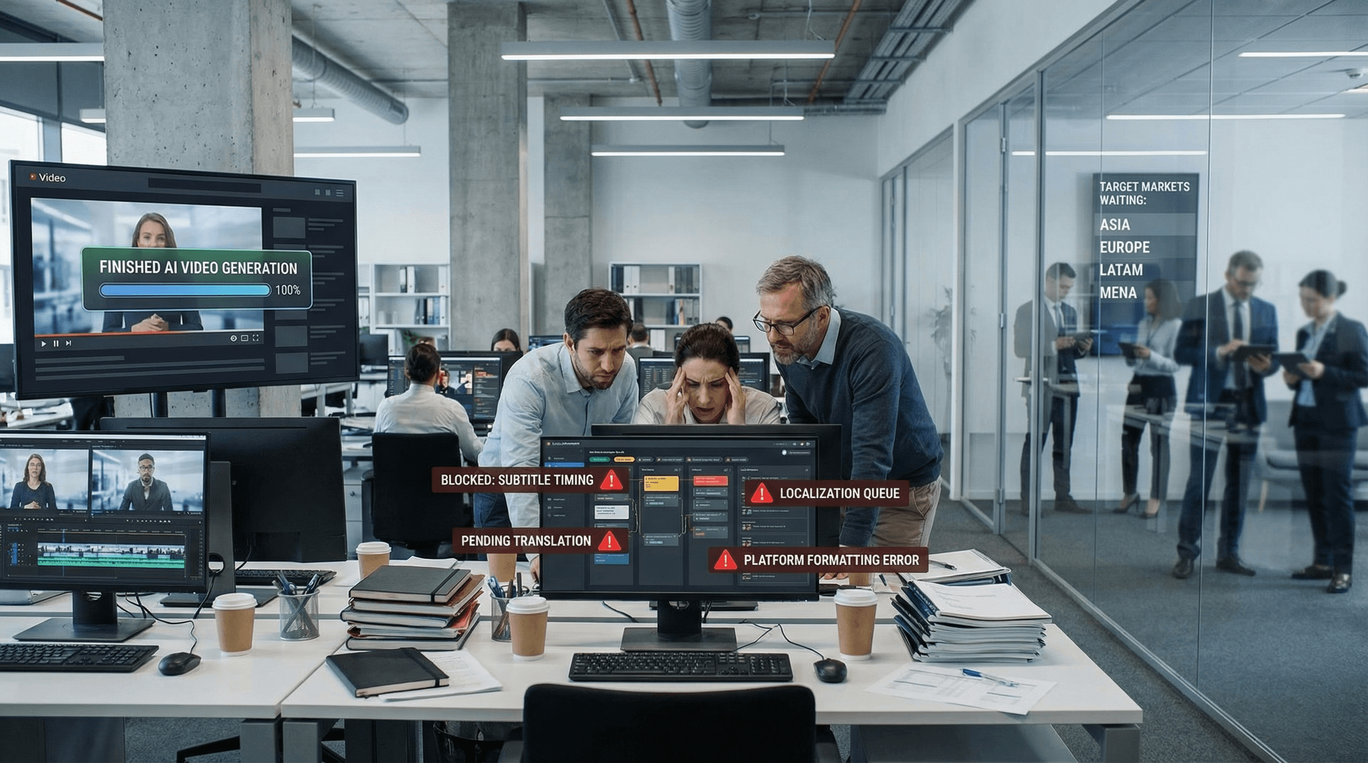 Caption: The real bottleneck often appears after video generation, when teams need subtitles, translation, and publishing readiness.