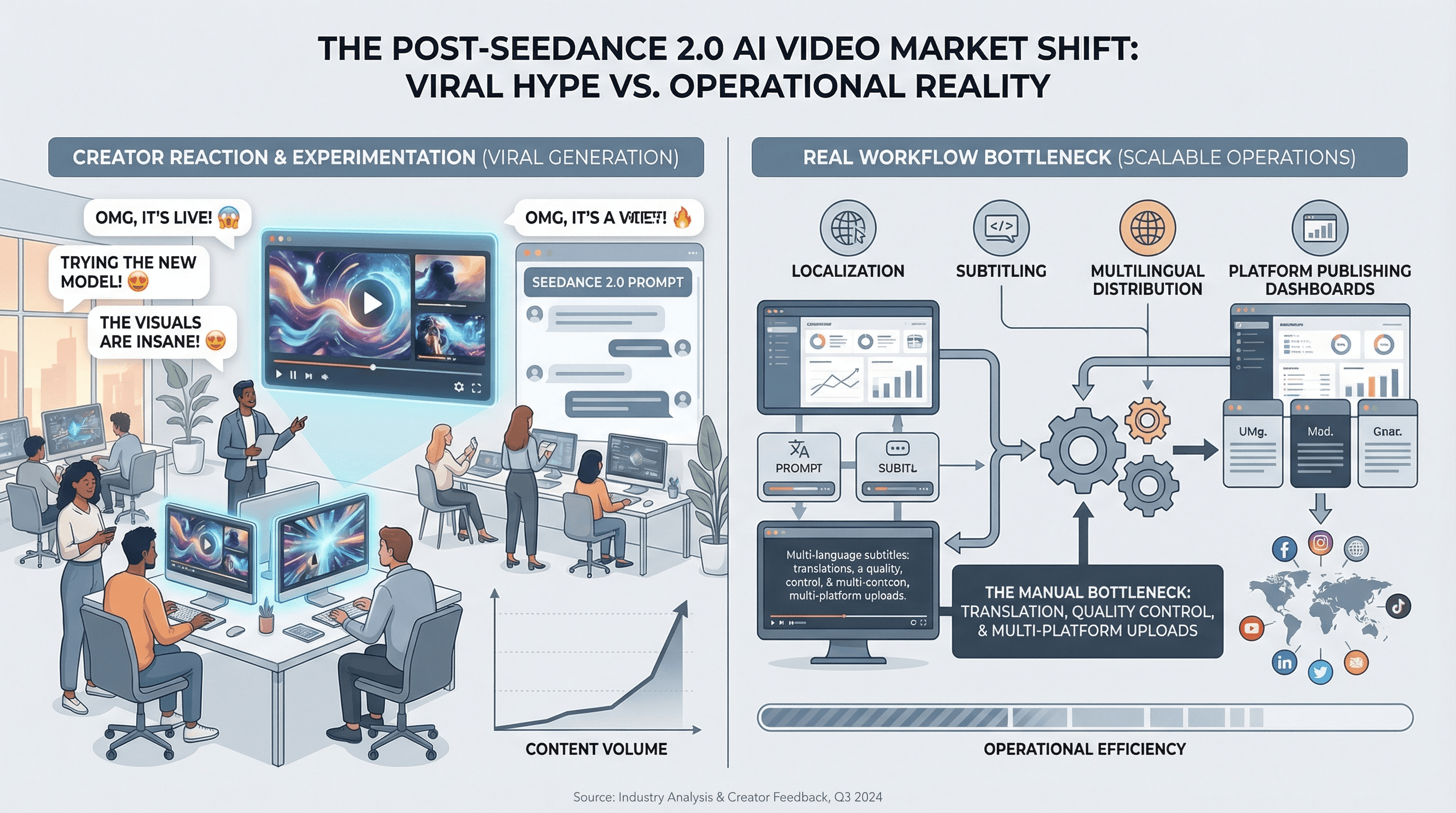 Even if Seedance 2.0 improves the generation stage, the downstream work still decides whether the content can actually travel.