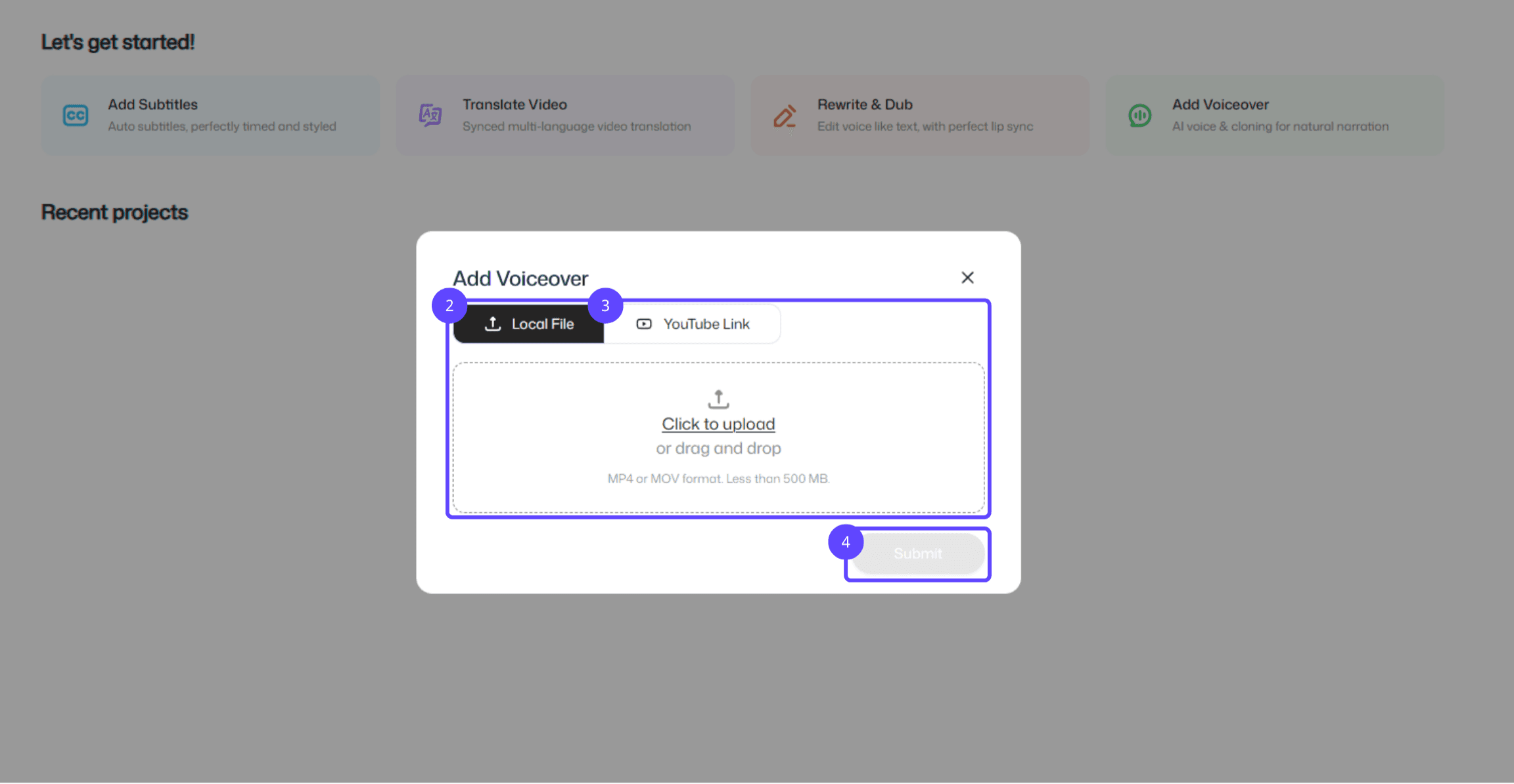 送信: 設定を確認し、ビデオファイルの処理を開始するには「送信」をクリックします。