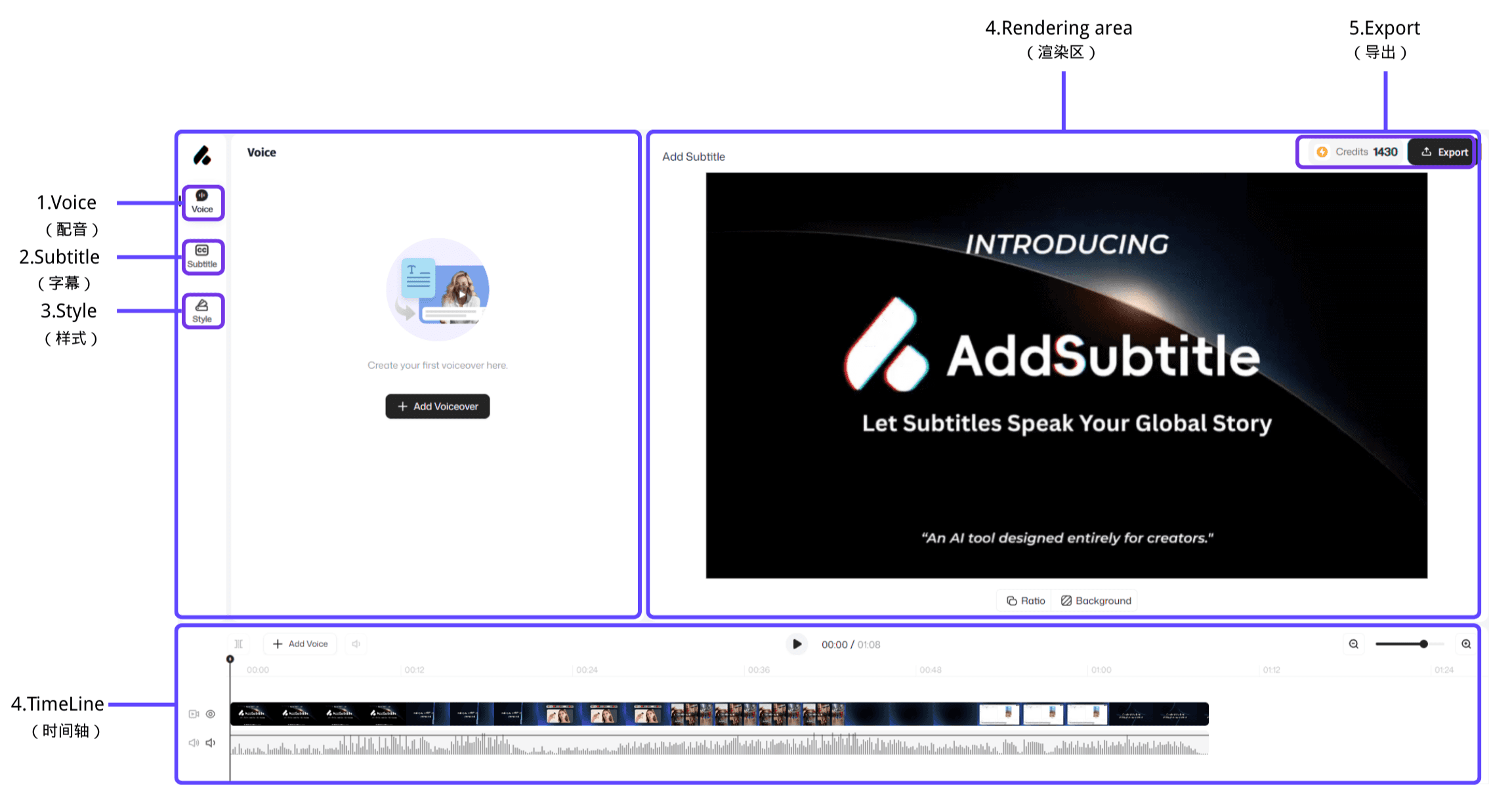 スタイル: 字幕スタイルのテンプレートを閲覧して適用し、視覚的一貫性を迅速に確保します。