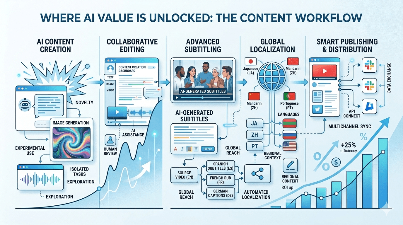 A IA facilita a criação de conteúdo, mas criar é apenas uma parte do trabalho. Quando as equipes produzem mais materiais, também precisam refiná-los, adaptá-los e prepará-los para canais reais.