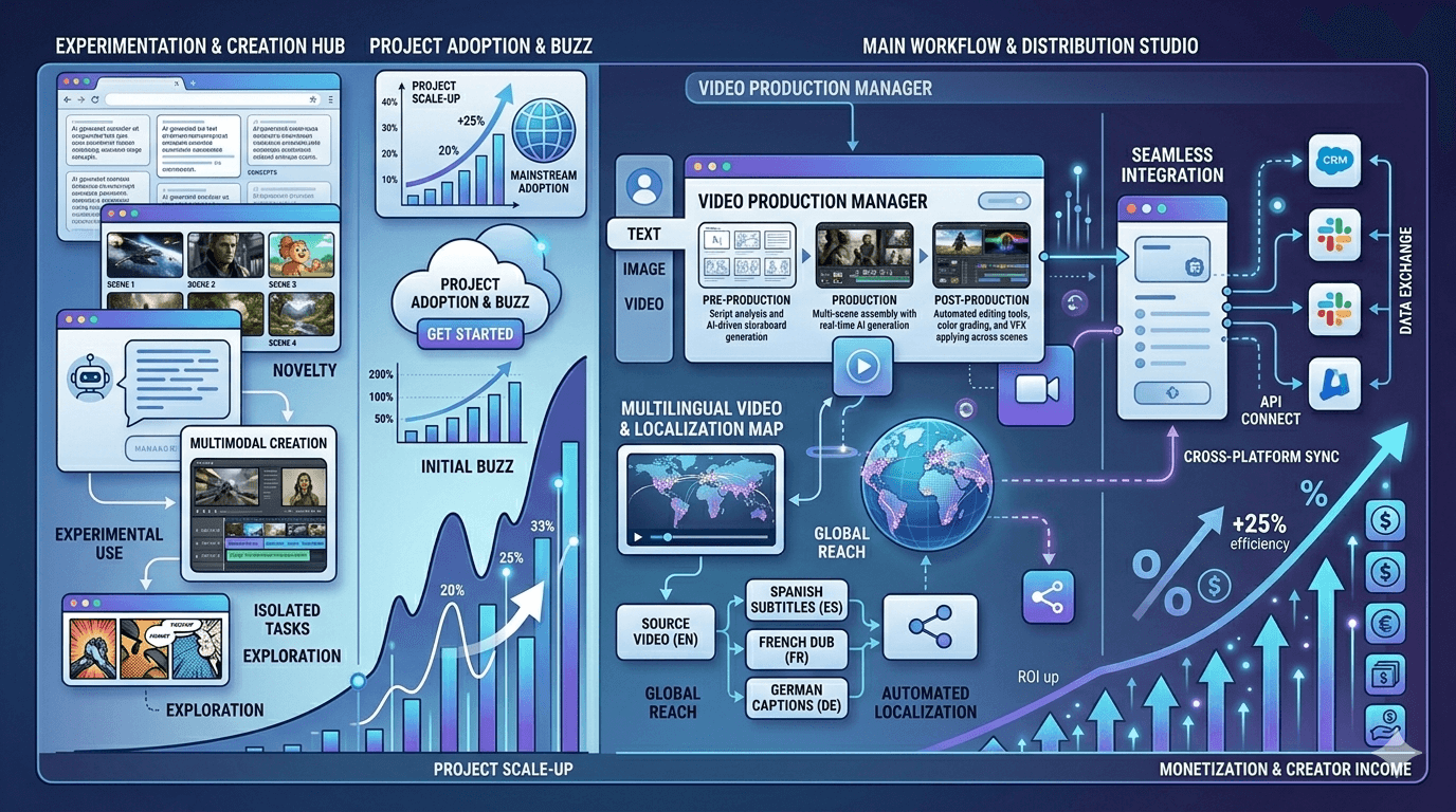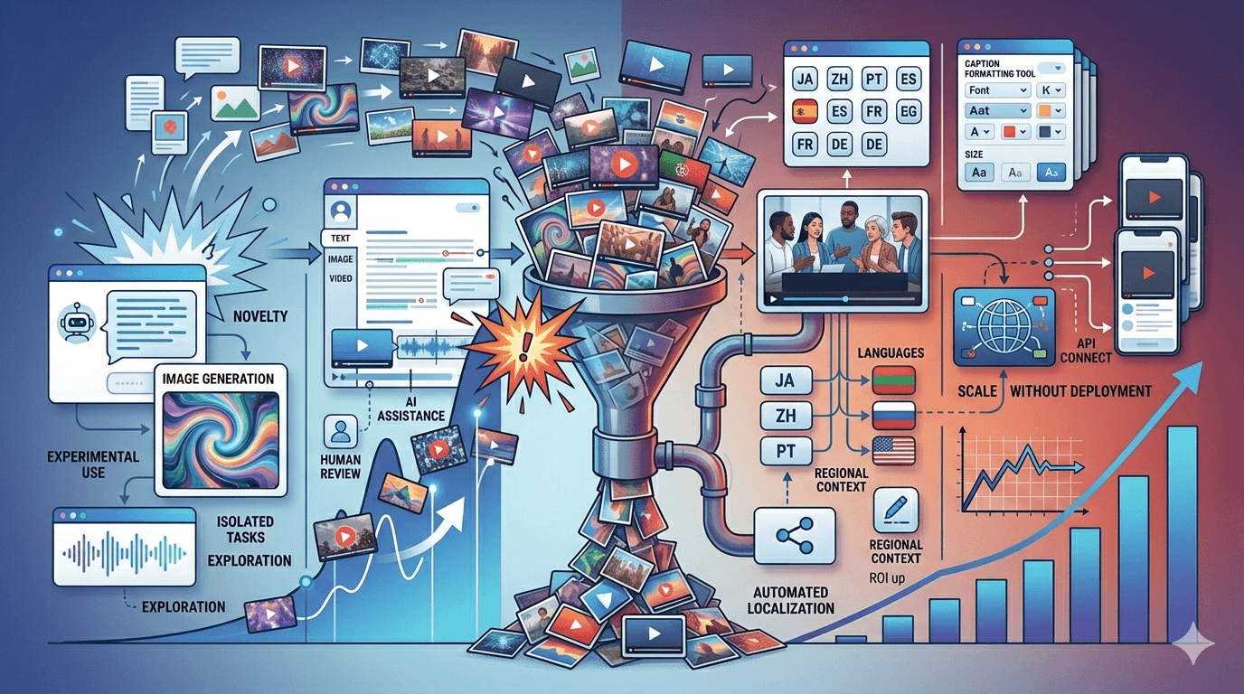 生成视频越多,对剪辑、字幕制作和本地化的需求就越大。团队仍然需要确保最终内容易于理解。