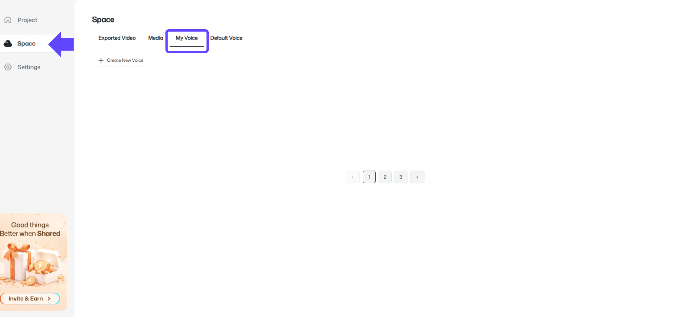 进入「空间」页面,并在页面右侧找到「我的声音」。